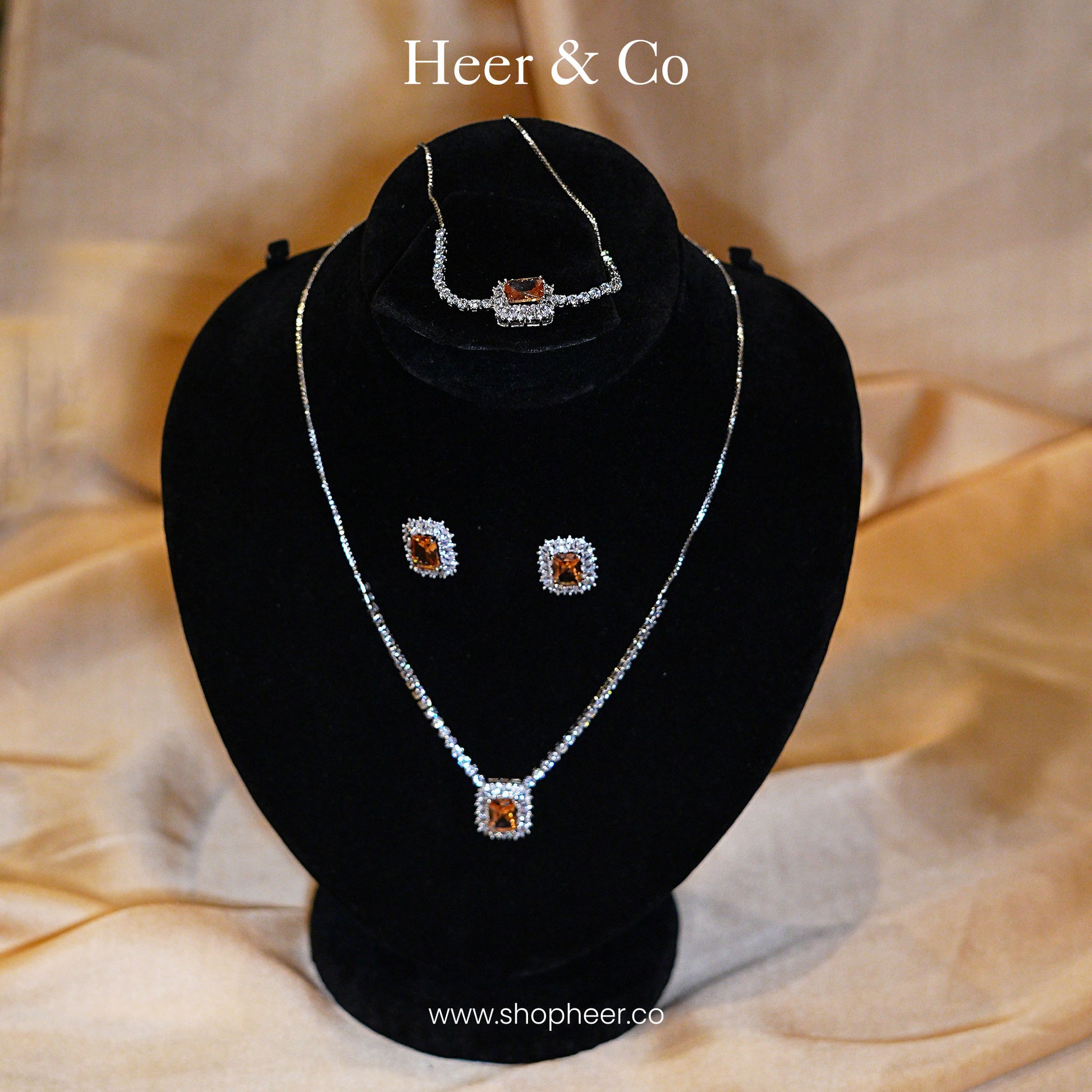 The Golden Halo Set features exquisitely crafted earrings and a pendant, each adorned with radiant yellow ruby crystals. This set combines vibrant color with expert design, offering a timeless accent that enhances elegance for any occasion. Perfect for those seeking a refined statement piece with the brilliance and warmth of yellow rubies, this collection brings sophisticated charm to your jewelry ensemble.
