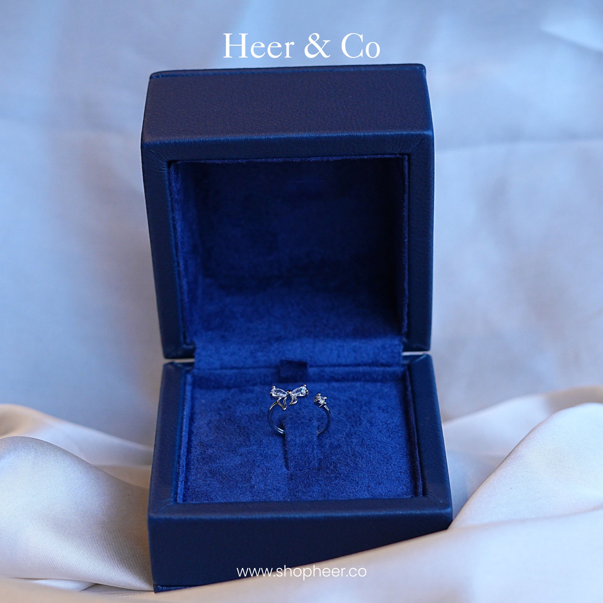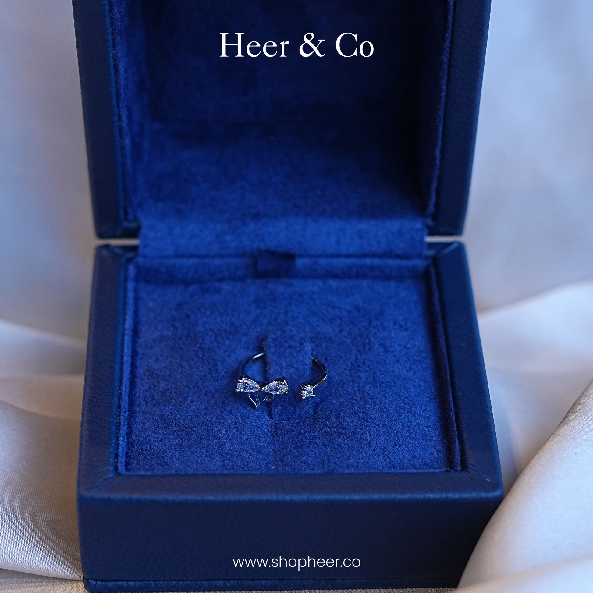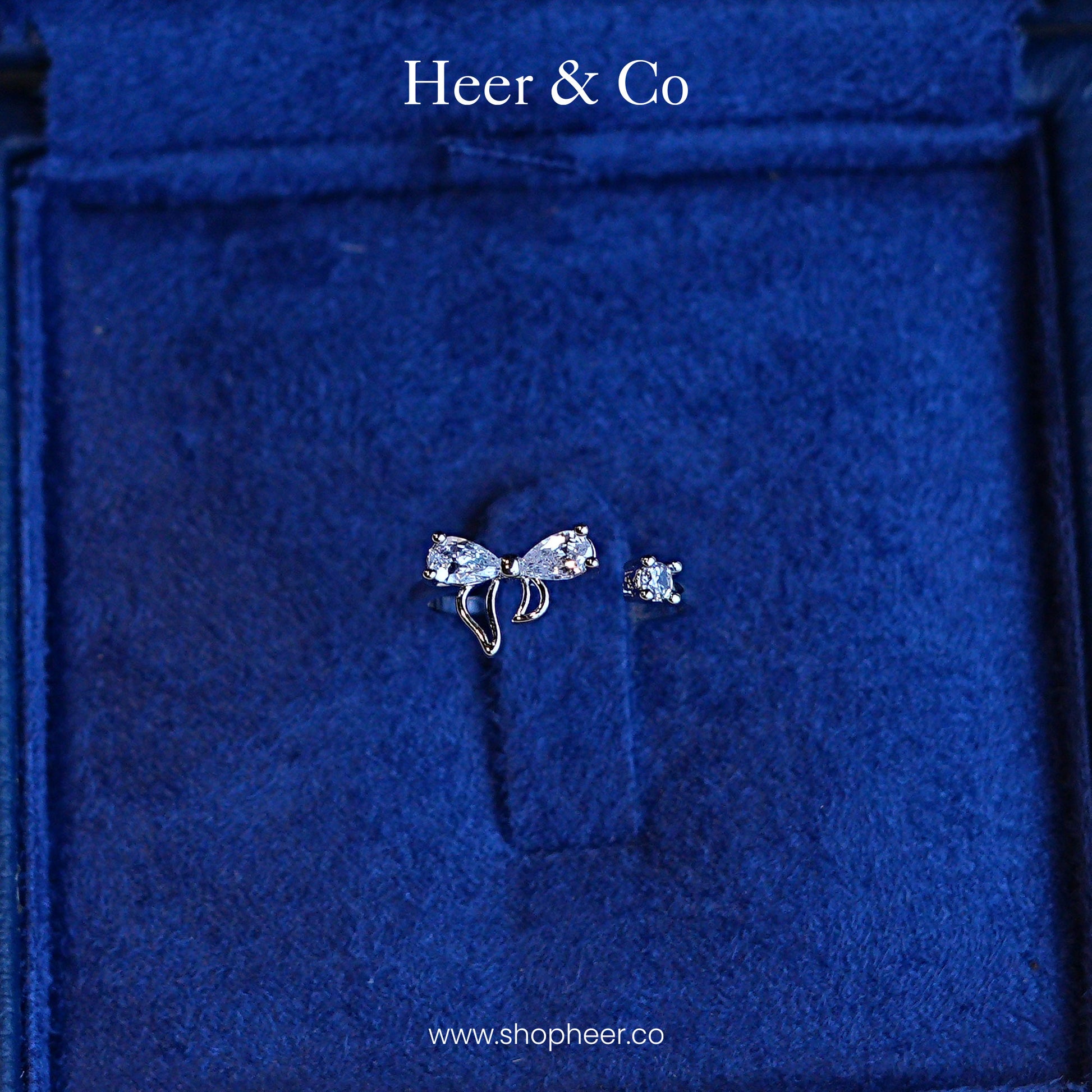 A delicate and playful open-cuff ring featuring a sparkling, stylized diamond-set bow opposite a petite, brilliant solitaire stone.