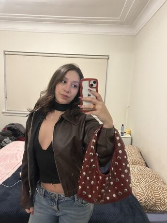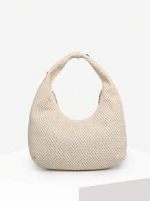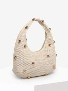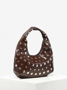 Women's Retro Punk Boho Style Ocean Decor Beach Bag, Crocheted Rivet Oiled Leather Large Capacity Shoulder Satchel, Suitable For Outings, Parties, And Daily Wear